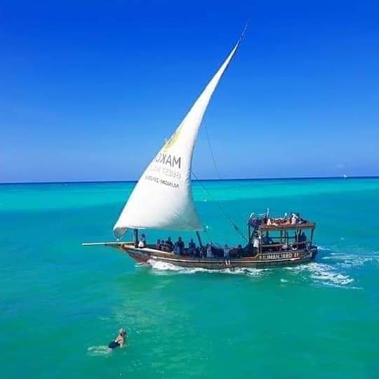 This is an evening relaxing time in a slow moving dhow by latin sail while the sun retires. Dhows are wooden big boats using both sail and outboard. Dhows have been in use since the very old time before introduction of modern ships. Dhows are traditional crafts built from strong hard woods joined together used for fishing, ferry people and cargo since the Old trade days along the coast mainly Arabs sailing along the coast. Dhows are build in different designs,fishing shows, cargo dhows, passenger dhow and romantic Dhows all can be build by owners wish. We use dhows to take tourists to Kisite and Mpunguti marine parks and for romantic cruises within Shimoni - Wasini Channel. Sunset Dhow Cruise always available. We do pick clients from there hotels and ride them to Shimoni where the dhow trip start and end - just a call away !!